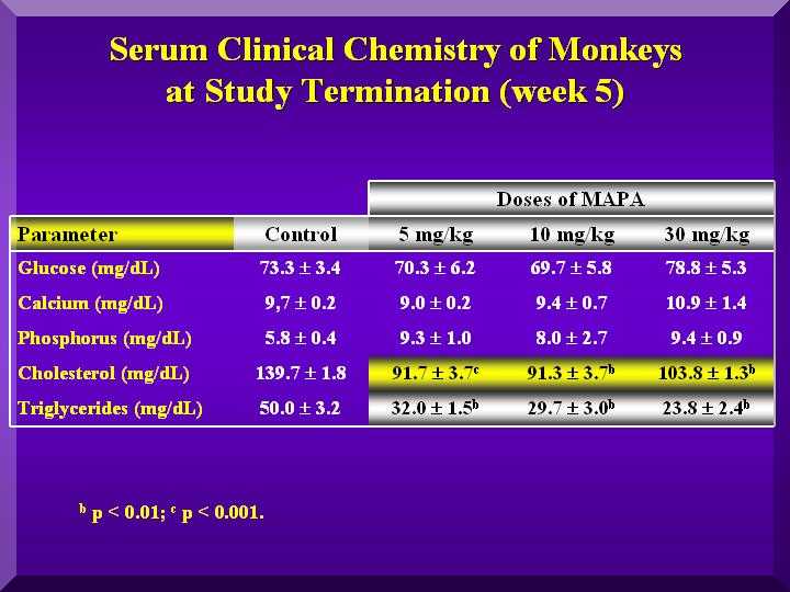 • In general, although alterations were found in the biochemical analyses in blood in the treated animals, these alterations are reversible, since animals studied after 30 and 60 days after interruption of the P-MAPA administration presented normal.